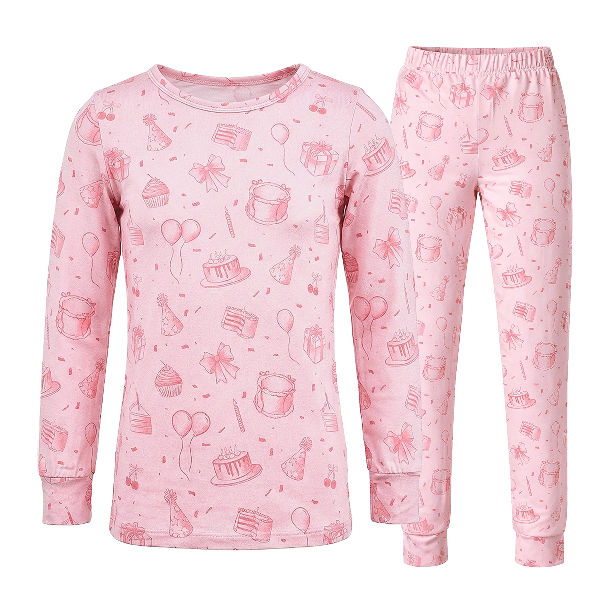 Our Go Shorty Kids Set is ultra-soft, comfortable, and perfect for bedtime. It features a birthday print. These birthday pajamas include our Lana long-sleeve top and our Lana snug fit trousers.