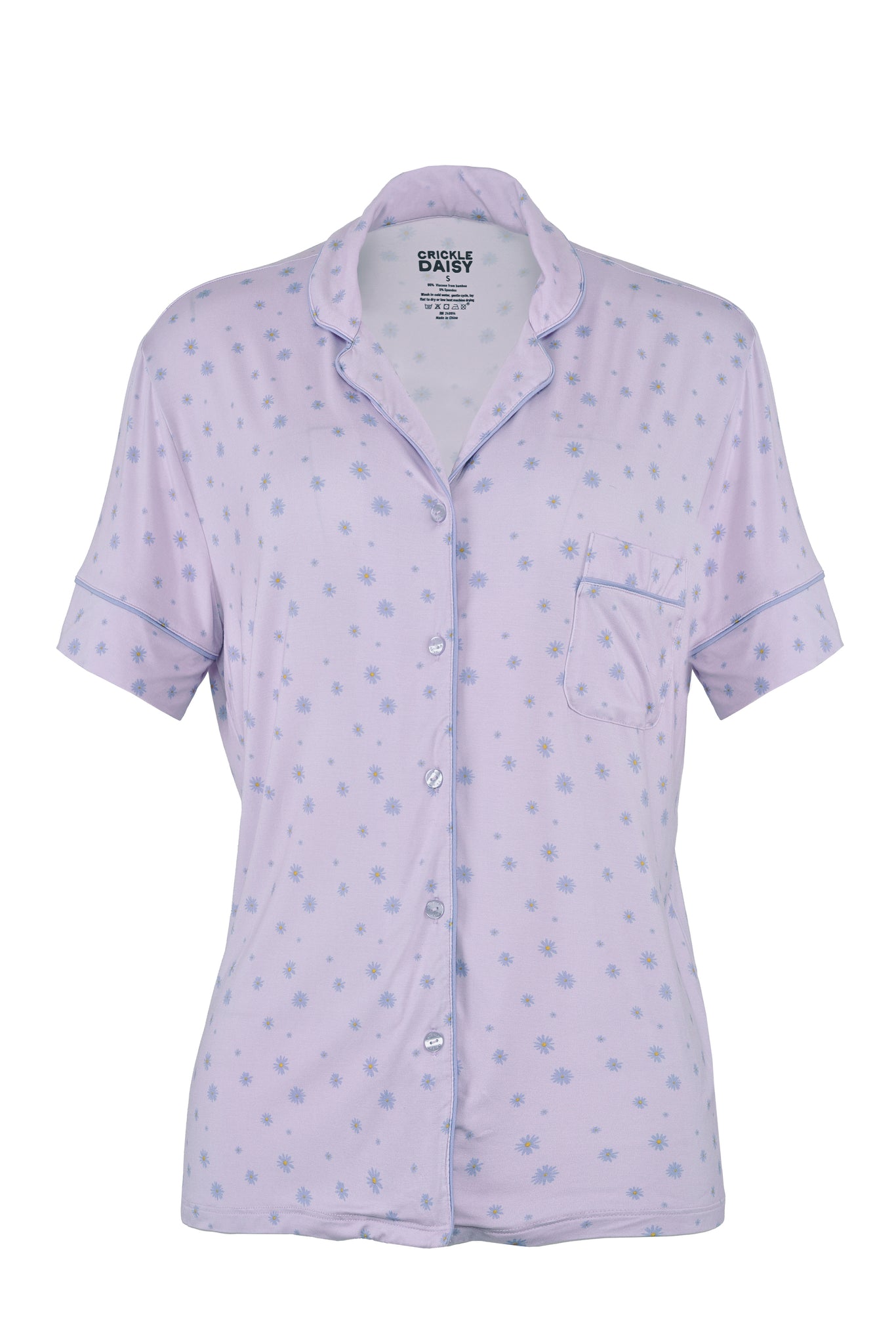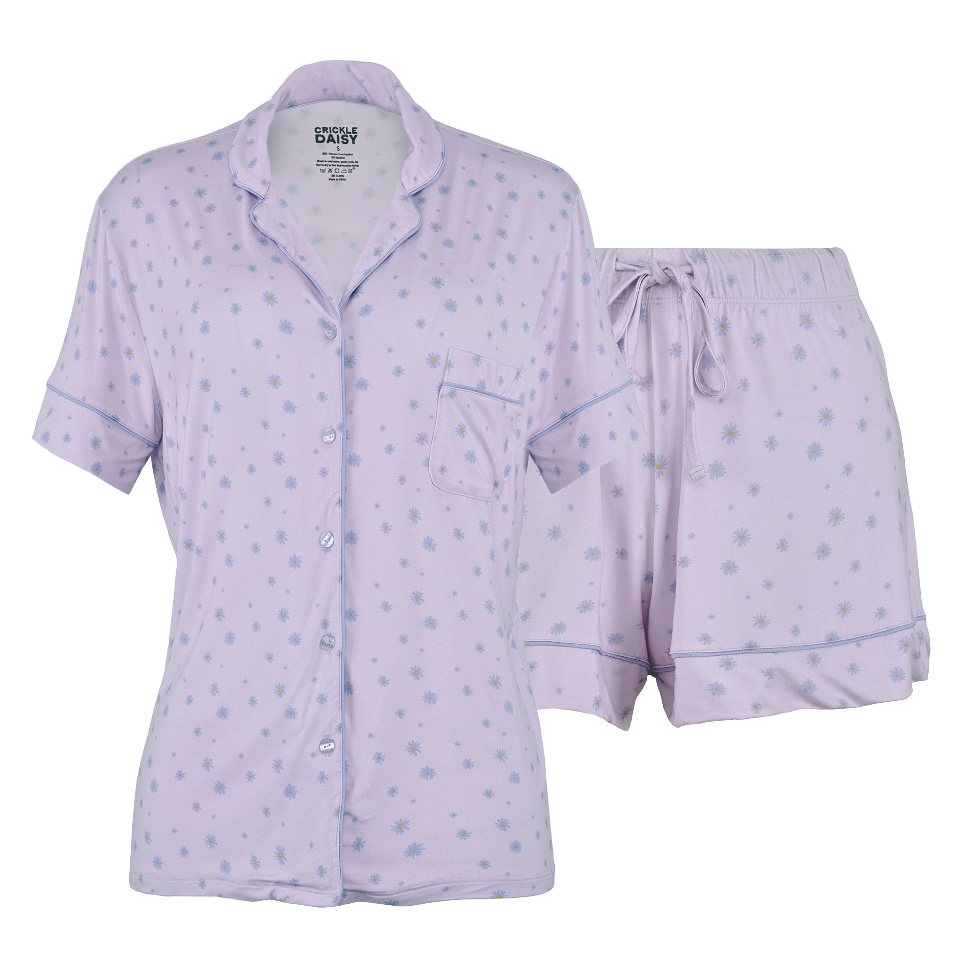 Our Oopsie Daisy Shorts Set is ultra soft, comfortable, and perfect for bedtime. It's our best seller tiny lavender daisy print on a short set. It includes our Lavinia button down short sleeve top and Fifi shorts.